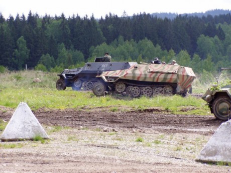 Také polní tábor, ve kterém na Bahnech přespáváme, bylo potřeba připravit. Stany, židle, stoly, polní kuchyni, proviant, lehátka, polní umývárnu, atd. Zpravidla poslední víkend před Bahny se většina členů klubu sejde v muzeu a provedeme naložení techniky „týlovým“ materiálem. Bylo tomu tak i letos o víkendu 15. a 16. května. V týdnu konání Bahen začalo navážení techniky a materiálu do VVP Jince. Pro bližší představu: sovětský tank T34 váží zhruba 32 tun, takže převézt takového „drobečka“ vyžaduje speciální podvalník. Oproti tomu německý Sd.Kfz 251/D-22 „Hakl“ váží pouze 7,5 tuny, takže přeprava je o něco jednodušší... Kolová technika jela většinou po ose, pouze vybrané kusy byly taženy na tyči, aby nebyl zbytečně zatěžován „zasloužilý“ motor. Historická technika se nevezla jen z Rokycan, ale například i z Hradce Králové (replika německého Sd.Kfz. 222).